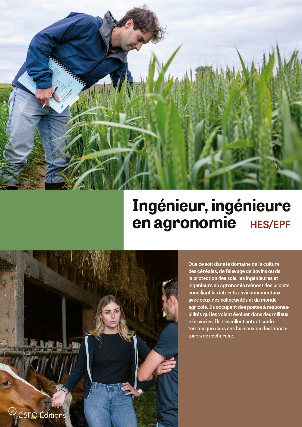 Que ce soit dans le domaine de la culture des céréales, de l’élevage de bovins ou de la protection des sols, les ingénieures et ingénieurs en agronomie mènent des projets conciliant les intérêts environnementaux avec ceux des collectivités et du monde agricole. Ils occupent des postes à responsabilités qui les voient évoluer dans des milieux très variés. Ils travaillent autant sur le terrain que dans des bureaux ou des laboratoires de recherche.