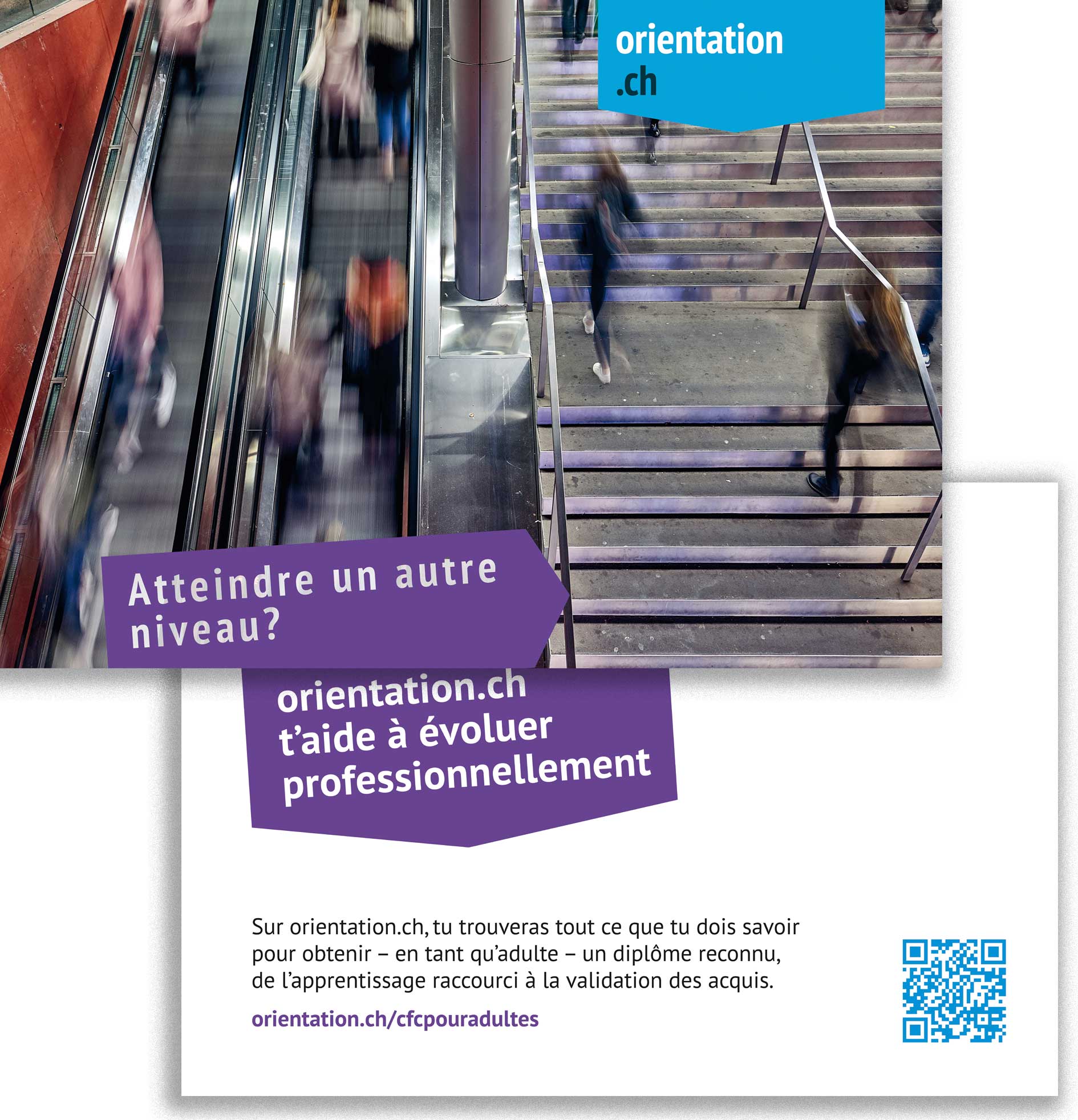 Ce flyer montre, par le biais du portail orientation.ch, ce qu’il faut savoir pour obtenir - en tant qu’adulte - un diplôme reconnu, de l’apprentissage raccourci à la validation des acquis.